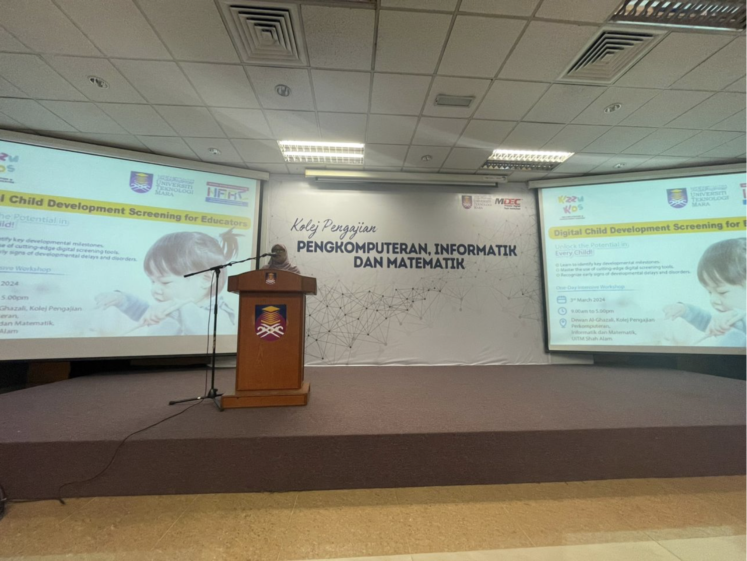 Shah Alam, 3rd Mac 2024 – Dalam dekad yang lalu, peningkatan bilangan Gangguan Spektrum Autisme (ASD) diagnosis di Malaysia, seperti yang didedahkan oleh Kementerian Kesihatan Malaysia (KKM). Untuk menangani cabaran pengesanan awal ASD, Pusat Sumber Autisme Kebangsaan (NARC), Kolej Pengkomputeran, Informatik, dan Matematik (KPPIM) baru-baru ini bekerjasama dengan Kizzu Kids Rehabilitation and Enrichment Centre Shah Alam. bersama-sama, mereka menganjurkan Inisiatif Saringan Perkembangan Kanak-Kanak yang cemerlang (CDSI) bengkel di Dewan Al-Ghazali, KPPIM UiTM Shah Alam, menarik penyertaan yang bersemangat daripada pendidik dan profesional di seluruh Lembah Klang.